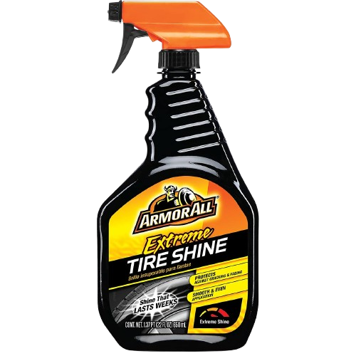 - مع رشة واحدة سريعة، يترك ملمع الإطارات هذا الإطارات تبدو مبللة وسوداء ولامعة